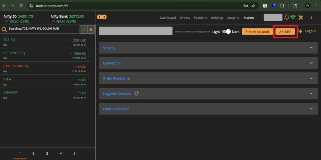 Once You Logged In Click on Your “User ID”. Then click on “API KEY” button