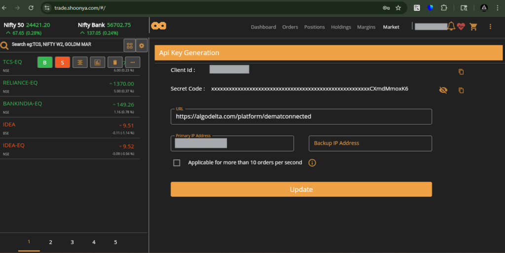 5. Add Shoonya Account Details in Algodelta’s Copy Trading