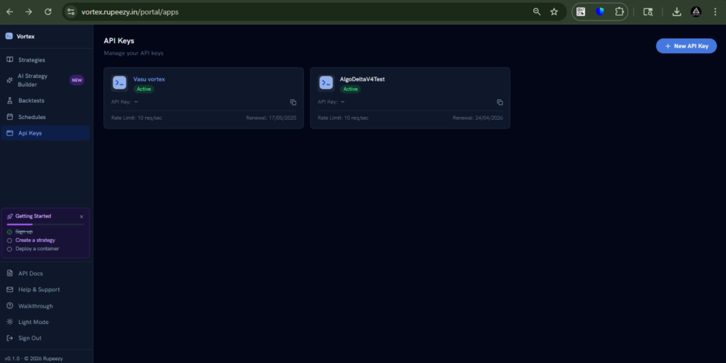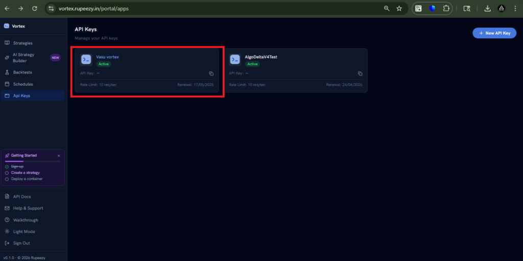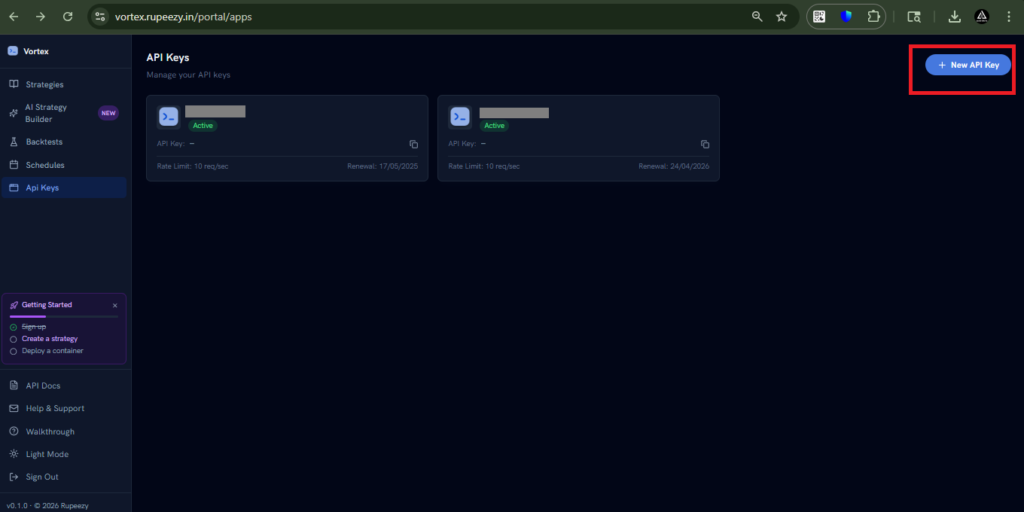 2. GenerateAPI Key from vortex Asthatrade(Rupeezy) portal.